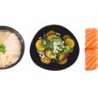 150/200/110 г • Суп Мисо 1/2, вок Морепродукты со сладким чили соусом 1/2, салат Теплый тори 1/2