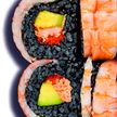 265 г • Креветки тигровые, чернила каракатицы, авокадо, краб микс, огурчик, соус сладкий чили