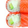 260 г • Лосось копченый, лосось жареный терияки, сливочный сыр, огурец, соус лайм