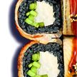 260 г • Сливочный сыр, огурчик, копченый угорь, чернила каракатицы, соус Унаги, микс белого и ч ерного кунжута