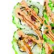 270 г • Креветка, икра масаго, сливочный сыр, салат айсберг, соусы спайси и лава